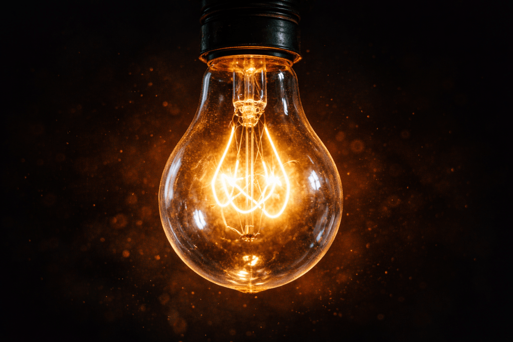 Je loopt door een schemerige kamer en je vingers tasten langs de muur. Je kent de plek van de schakelaar blindelings, maar voor een fractie van een seconde is er die aarzeling in het donker. Je drukt de knop in en het glas boven je hoofd vult zich met een trage, warme gloed. Je kijkt omhoog en ziet de ragfijne metaaldraadjes binnenin het glas roodgloeiend worden. Ze trillen bijna van de spanning, gevangen in hun eigen kleine vacuüm, terwijl ze de duisternis om je heen wegduwen.